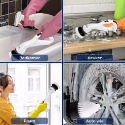 B-care Elektrische Schoonmaakborstel – 4 Opzetstukken – Wasborstel – Poetsmachine – Schrobborstel – Handborstel – Werkborstel – Schrobber – Boorborstel – Schoonmaakmiddelen – Reinigingsborstel