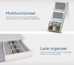 Dankzij de keuken organiser hoef jij je geen zorgen meer te maken over de indeling van jouw kruidenpotjes. Of je hem nou gebruikt voor in je keukenla, het aanrecht of gewoon in de kast, een keken organiser is een must-have voor je kruidepotjes.