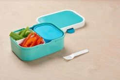 Het bakje bakje is voorzien van een speciaal vorkje en makkelijk te gebruiken door jou. De mogelijkheden voor een geweldige kinderlunch worden hierdoor bijna oneindig. Liever ‘gewoon’ vier boterhammen mee? Het bento bakje eruit en je hebt ruimte genoeg!