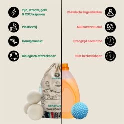 Doe de schone was en de drogerballen samen in de wasdroger. Gebruik: