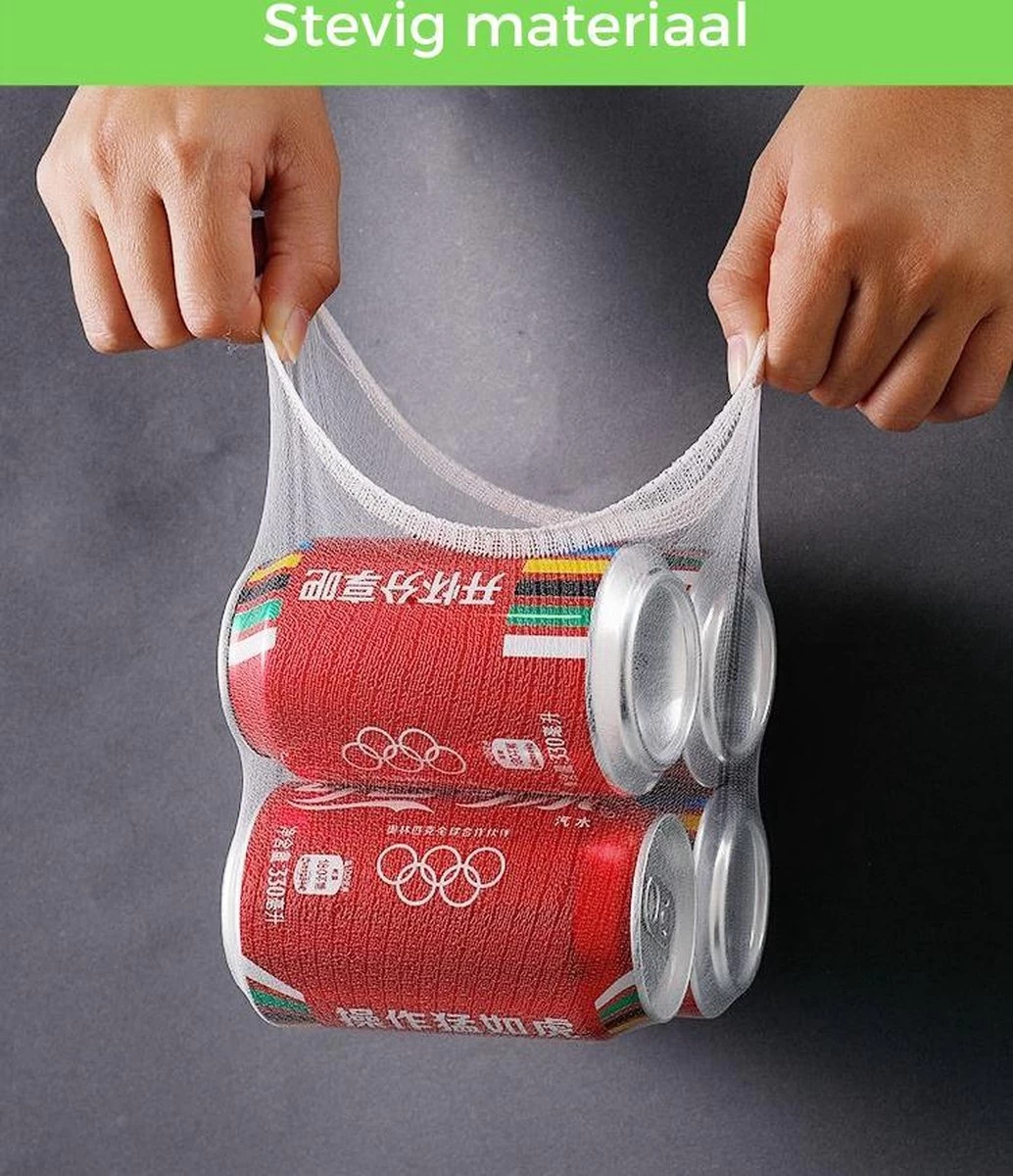 Dit product word geleverd met : – Rekje om de netjes in te bevestigen – Een rol dubbelzijdige tape – Zak met 50 biologisch afbreekbare netjes