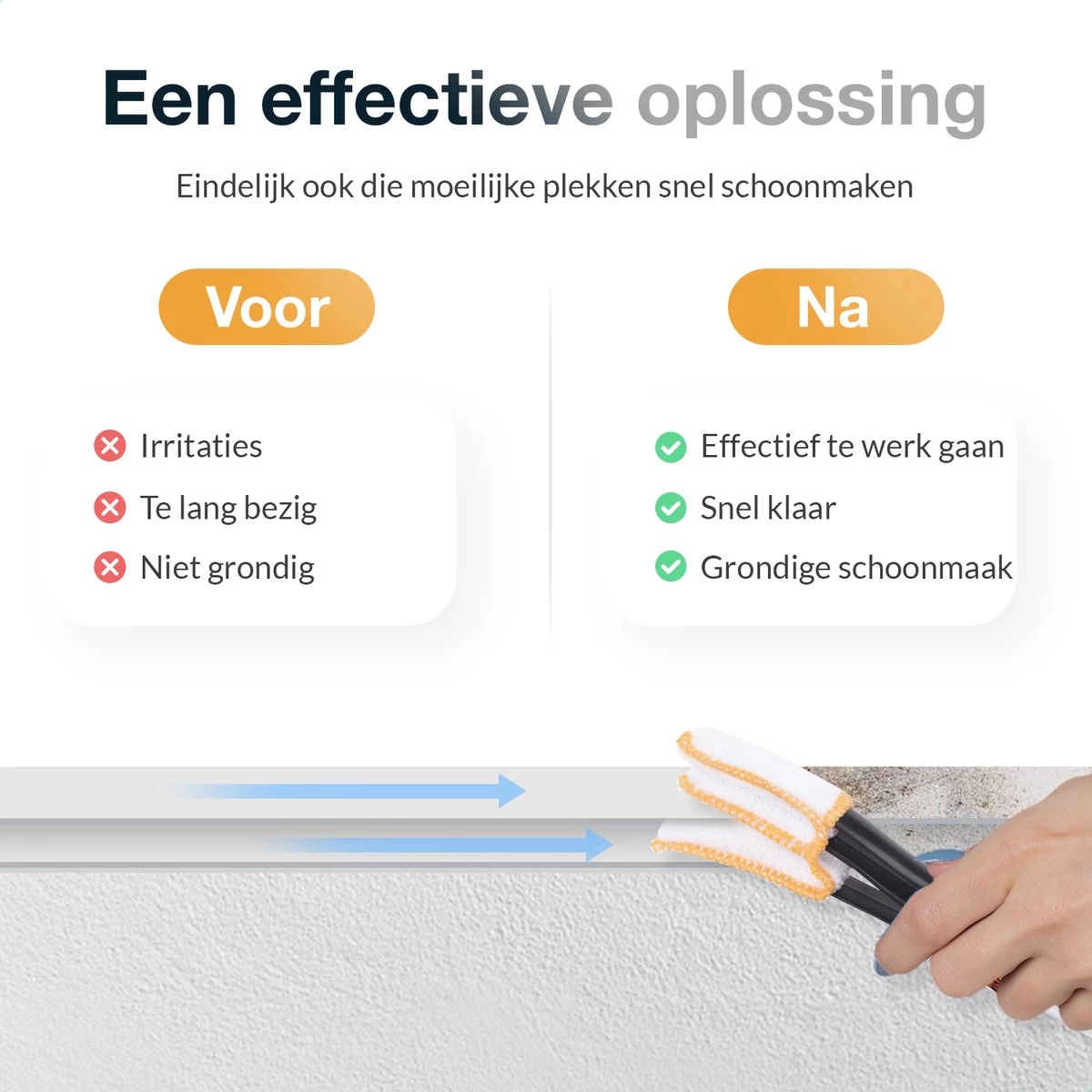 OOK KOZIJNEN SNEL SCHOONMAKEN – De meeste lamellen reinigers zijn niet heel veelzijdig. Vaak moet je alsnog een extra borstel aanschaffen om je kozijnen schoon te maken. Met de BRIGHTLY lamellen reiniger is dit niet langer noodzakelijk. Aan de achterkant van de lamellen reiniger zit daarom een borstel waardoor je naast je lamellen ook de kleine hoekjes en kiertjes van je kozijn in een handomdraai schoonmaakt.