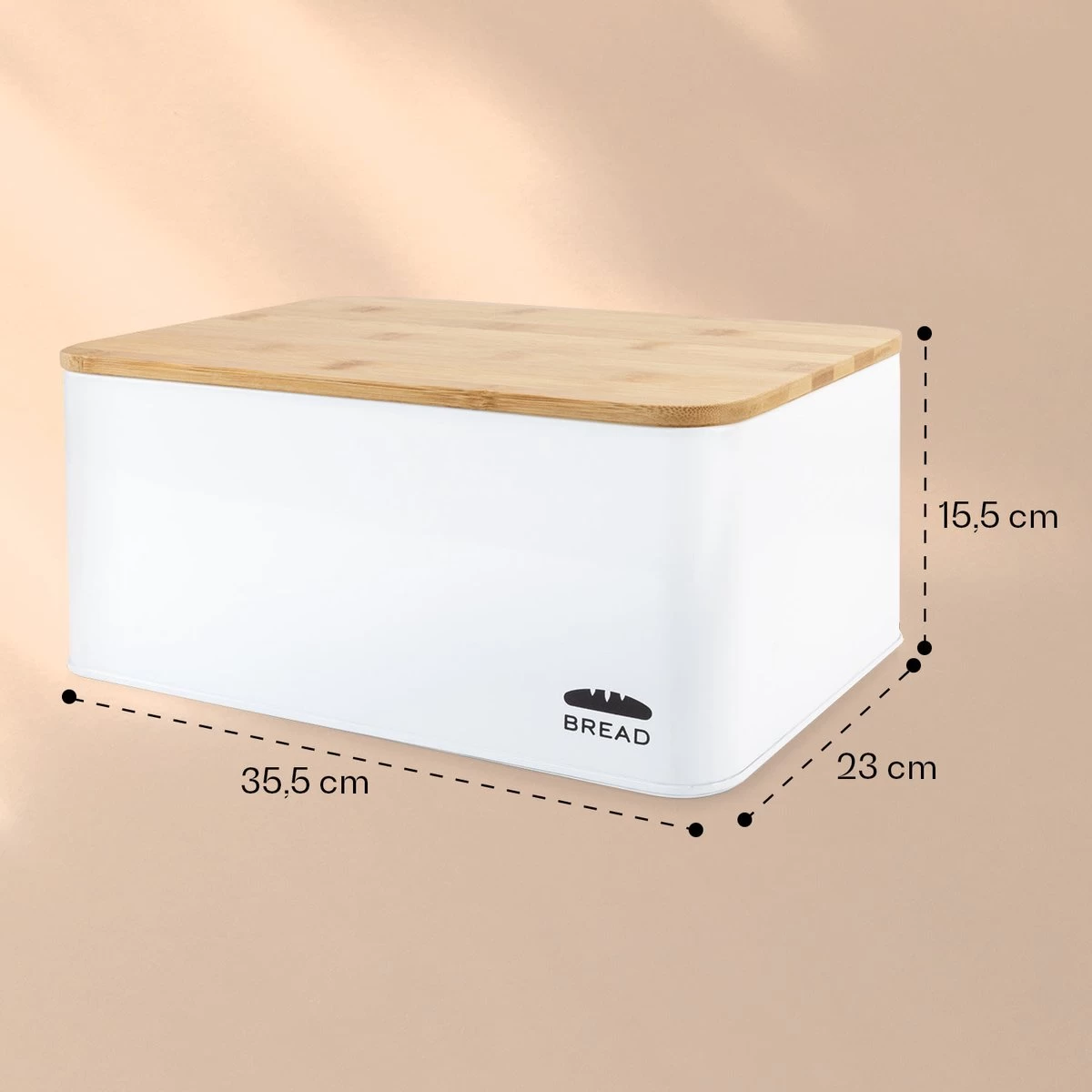 Praktisch en chique! De grote metalen broodtrommel Oklahoma met snijplank in trendy look van Klarstein is niet alleen zeer stevig en groot genoeg om meerdere broden en bakwaren tegelijk in op te bergen, maar ook een absolute blikvanger in de keuken. Dankzij de ventilatiegaten aan de achterkant van de broodtrommel is de belangrijke luchtcirculatie gewaarborgd. Dit vermindert het vocht binnenin en houdt uw brood lang knapperig en vers! Het praktische en robuuste bamboe deksel kan ook als snijplank worden gebruikt. Met afmetingen van 35,5 x 15,5 x 23 cm (BxHxD), past deze broodopberger comfortabel op uw dressoir, aanrecht of in de ruime keukenkast.