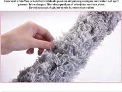 De stofdoek is gefabriceerd van microvezels.Dit zorgt ervoor dat het stof aantrekt als een magneet vanwege de statische wrijving. Met als voordeel dat u tijdens het afstoffen al het stof in een keer meeneemt.