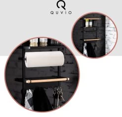 Zoals je misschien al kon raden,zijn er enorm veel toepassingen voor dit QUVIO keukenrekje. Op het bovenste plankje kan je bijvoorbeeld kruiden plaatsen. Achter de onderste houten stang kan je een pannendeksel plaatsen,waarbij de knop zichzelf steunt aan de plank. De stang in het midden is open aan de zijkant,dus daar kan ook een rol keukenpapier aangehangen worden! En wat dacht je van een theedoek? Die kan ook heel handig aan een stang gehangen worden of aan één van de haakjes. De haakjes zijn ook heel fijn om je keukengerei aan te hangen. Kortom,een heel veelzijdig product. Snel te bevestigen dankzij de magneten en daarbij ook nog veel mogelijkheden om keukengerei op te bergen. Dit QUVIO keukenrekje zorgt zeker voor een opgeruimde keuken.