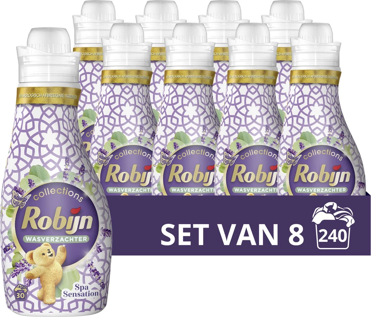 Laat je verrassen door de heerlijke en luxe geur van Robijn Collections Spa Sensation wasverzachter. Robijn heeft de geur van deze Collections wasverzachter verbeterd, zodat je kunt genieten van heerlijk zacht wasgoed en een nóg betere geurervaring. Het frisse parfum van deze wasverzachter is ontworpen door parfumexperts en zorgt voor een nog langer durende frisheid van je wasgoed. Ontsnap even uit de dagelijkse drukte en ervaar wellness in je was. De unieke formule is verrijkt met essentiele oliën van eucalyptus en lavendel. Eeuwenoude ingrediënten die helpen lichaam en geest te ontspannen en revitaliseren. Ideaal voor handdoeken en beddengoed. De wasverzachter zorgt ook voor een speciale beschermlaag rondom de vezels van de stof. Dit zorgt ervoor dat er minder wrijving ontstaat tussen de vezels, met als gevolg dat je kleding zijn kwaliteit behoudt doordat het minder snel slijt en zijn pasvorm en kleuren behoudt. Daarnaast is je kleding makkelijker strijkbaar door de wasverzachter en droogt het sneller. De Robijn Collections Spa Sensations wasverzachter bevat ingrediënten die voor 95% biologisch afbreekbaar zijn. De resterende 5% is om de kwaliteit en veiligheid van het product te garanderen. Hierdoor blijft je kleding heerlijk zacht en zorg je tegelijkertijd beter voor het milieu. Robijn Spa Sensation is verkrijgbaar in wasmiddel en wasverzachter, die samen zorgen voor de perfecte spabeleving.
