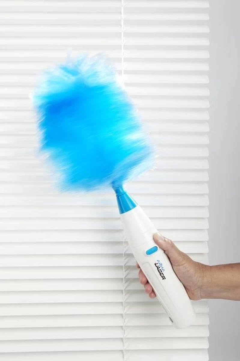 Deze superhandige spinduster op batterijen stoft razendsnel af en is veel veiliger voor kleine, wat wankel staande snuisterijen dan een gewone stofdoek. Elektrostatisch geladen haren trekken overal stof uit en vangen stof op. De Aqua Laser Turbo Duster heeft super zachte borstelharen, die zich aanpassen aan elke vorm van uw meubels en zachtjes stof weg-spinnen. Geen behoefte meer aan een veren stofdoek, doek of stof-reiniger. Boekenplanken, jaloezieën, meubels, gleuven, hoeken en andere moeilijk bereikbare plaatsen, ze zijn allemaal gemakkelijk af te stoffen. Met de verlengsteel kom je gemakkelijk bij hoger gelegen plekken als bovenop de boekenkast. De plumeaus zijn wasbaar en kunnen met de hand worden afgespoeld en vervolgens aan de lucht worden gedroogd.